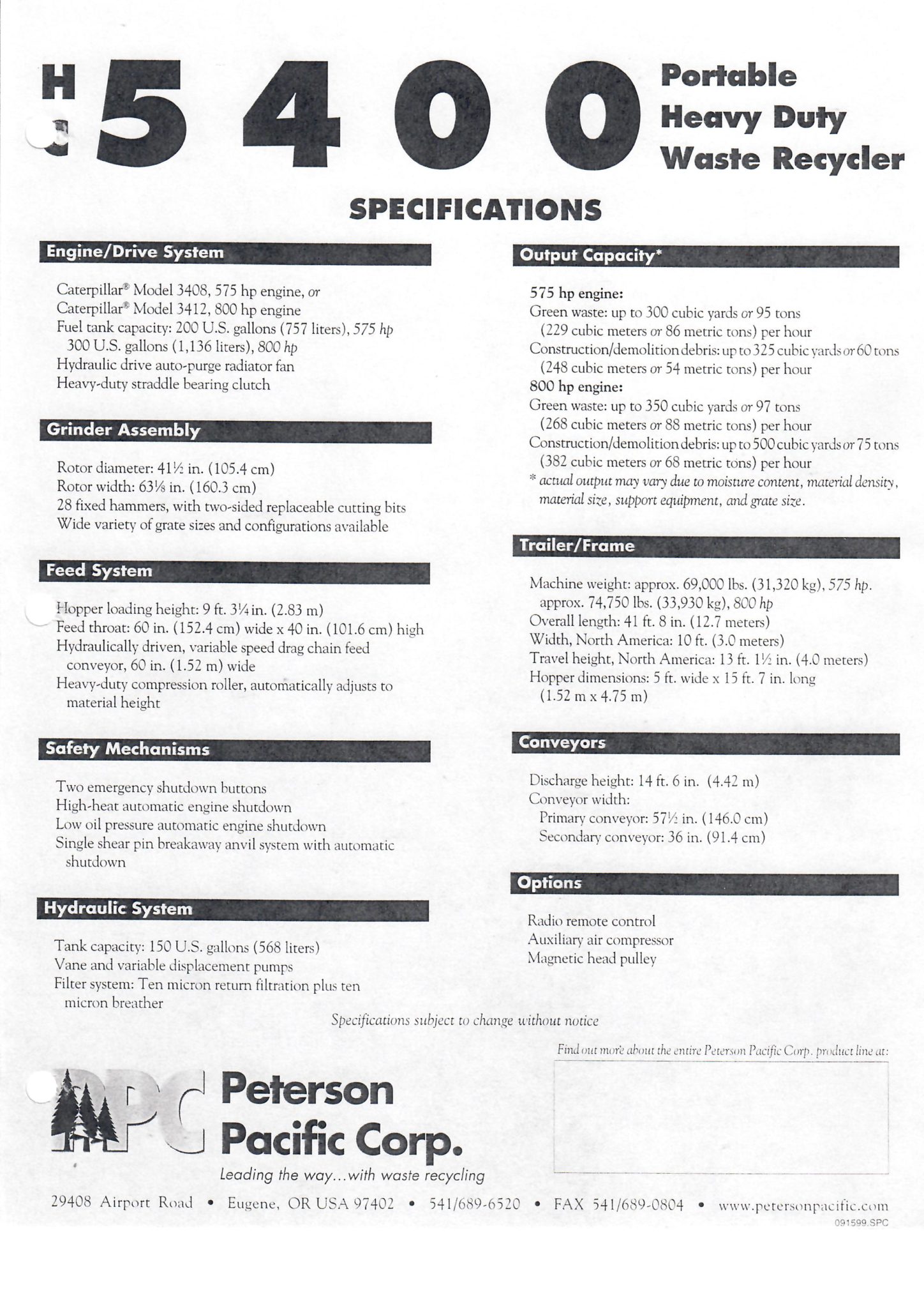2003 Peterson Pacific 5400 Horizontal Grinder – SOLD